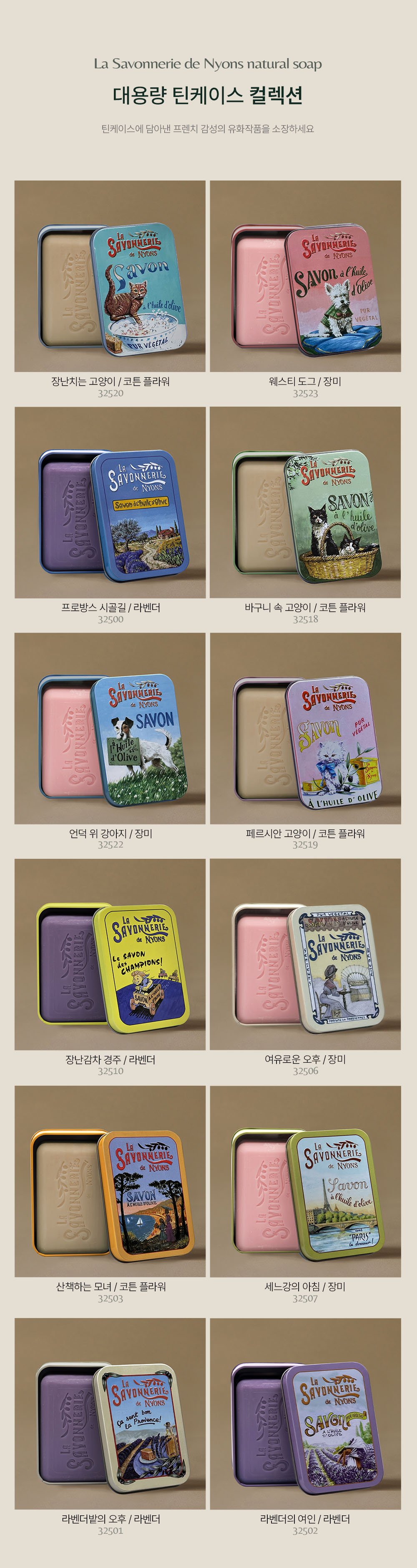 프랑스 니옹 전통 공법으로 만든 트리플 밀드 비누로, 천연 에센셜 오일과 자연 유래 성분을 사용해 높은 순도와 향 지속력, 저자극 세정 효과를 갖춘 프리미엄 비누입니다.
